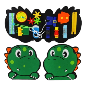 Montessori tabulka s úkoly pro batolata ve tvaru dinosaura